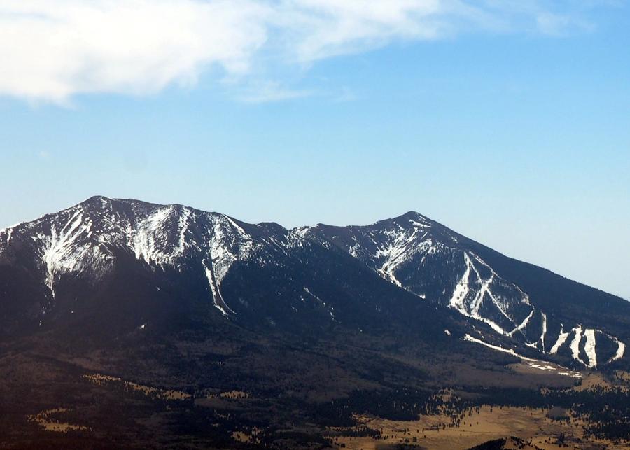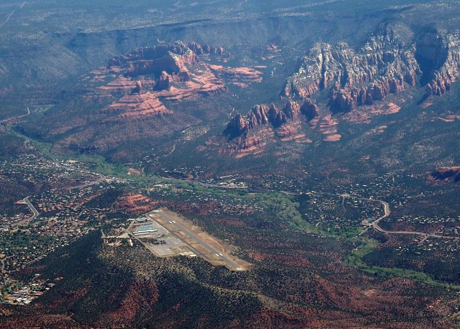 På tilbaketuren fra Grand Canyon til Phoenix fløy vi over Flagstaff og Sedona. Flagstaff er det høyeste punktet på Route 66, og fjellbyen ligger midt i verdens største sammenhengende furuskog.